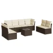 vidaXL Vrtna sedežna garnitura 9-delna z blazinami rjava poli ratan