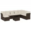 vidaXL Vrtna sedežna garnitura 9-delna z blazinami rjava poli ratan