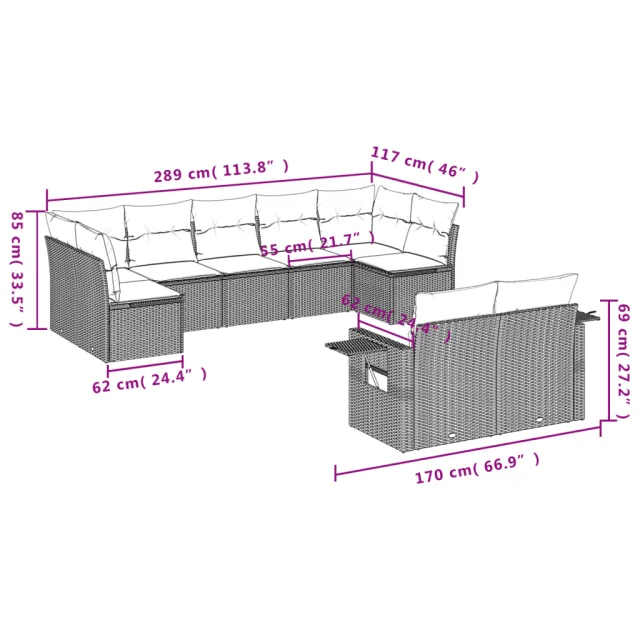 Ta vrtna sedežna garnitura je popoln dodatek za vaše dvorišče, teraso ali verando, saj zagotavlja udoben in vabljiv prostor za klepet z družino in prijatelji ali preprosto za sprostitev in uživanje na prostem.