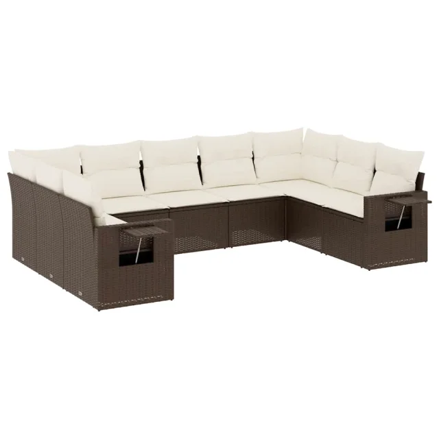 vidaXL Vrtna sedežna garnitura 9-delna z blazinami rjava poli ratan