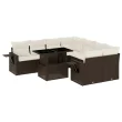 vidaXL Vrtna sedežna garnitura 9-delna z blazinami rjava poli ratan