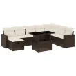 vidaXL Vrtna sedežna garnitura 9-delna z blazinami rjava poli ratan
