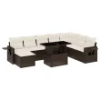 vidaXL Vrtna sedežna garnitura 9-delna z blazinami rjava poli ratan