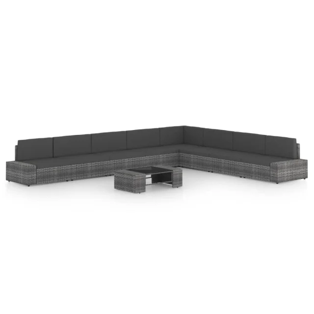 vidaXL Vrtna sedežna garnitura 9-delna z blazinami siv poli ratan