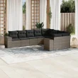 vidaXL Vrtna sedežna garnitura 9-delna z blazinami siv poli ratan