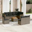 vidaXL Vrtna sedežna garnitura 9-delna z blazinami siv poli ratan