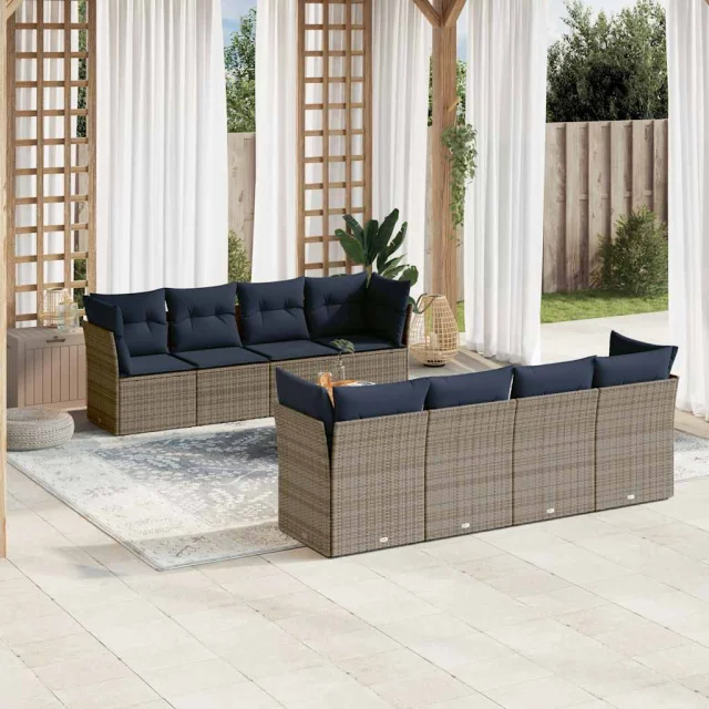 vidaXL Vrtna sedežna garnitura 9-delna z blazinami siv poli ratan