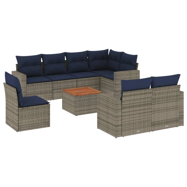 vidaXL Vrtna sedežna garnitura 9-delna z blazinami siv poli ratan