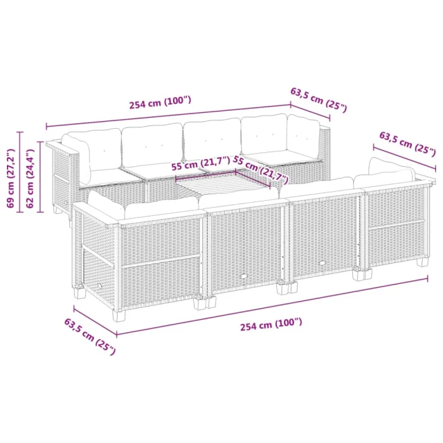vidaXL Vrtna sedežna garnitura 9-delna z blazinami siv poli ratan