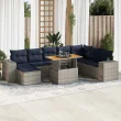 vidaXL Vrtna sedežna garnitura 9-delna z blazinami siv poli ratan
