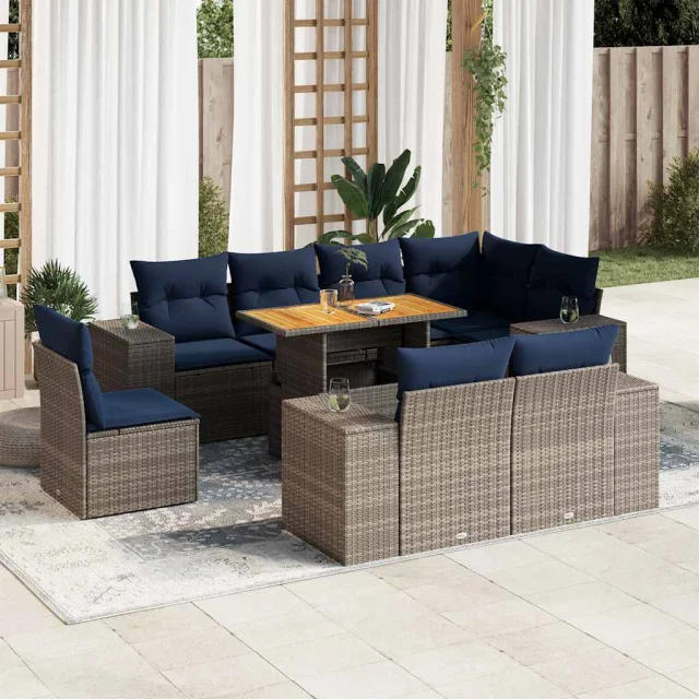vidaXL Vrtna sedežna garnitura 9-delna z blazinami siv poli ratan