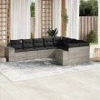vidaXL Vrtna sedežna garnitura 9-delna z blazinami sv. siv poli ratan
