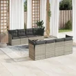 vidaXL Vrtna sedežna garnitura 9-delna z blazinami sv. siv poli ratan