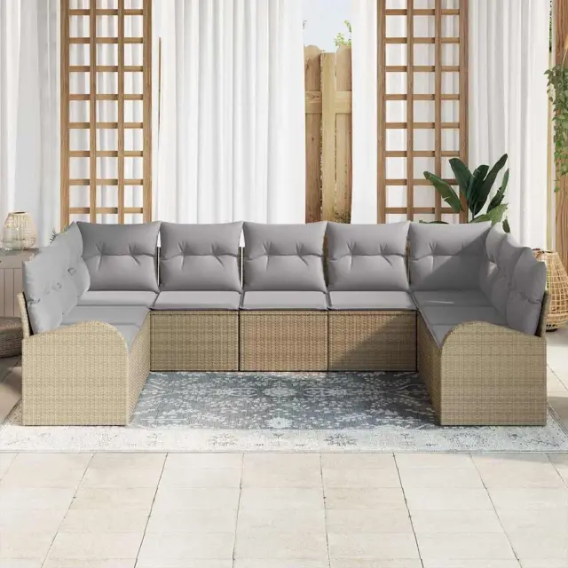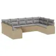 vidaXL Vrtna sedežna garnitura 9 pcs Bež in svetlo siva poli ratan
