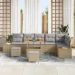 vidaXL Vrtna sedežna garnitura 9 pcs Bež poli ratan