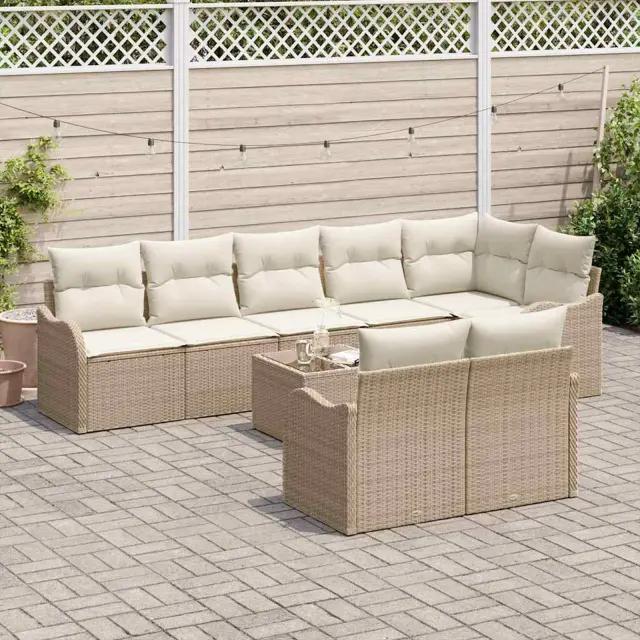 vidaXL Vrtna sedežna garnitura 9 pcs Bež poli ratan