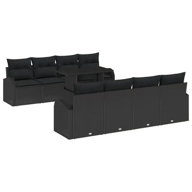 vidaXL Vrtna sedežna garnitura 9 pcs Črna 100 x 55 x 73 cm Poly ratan