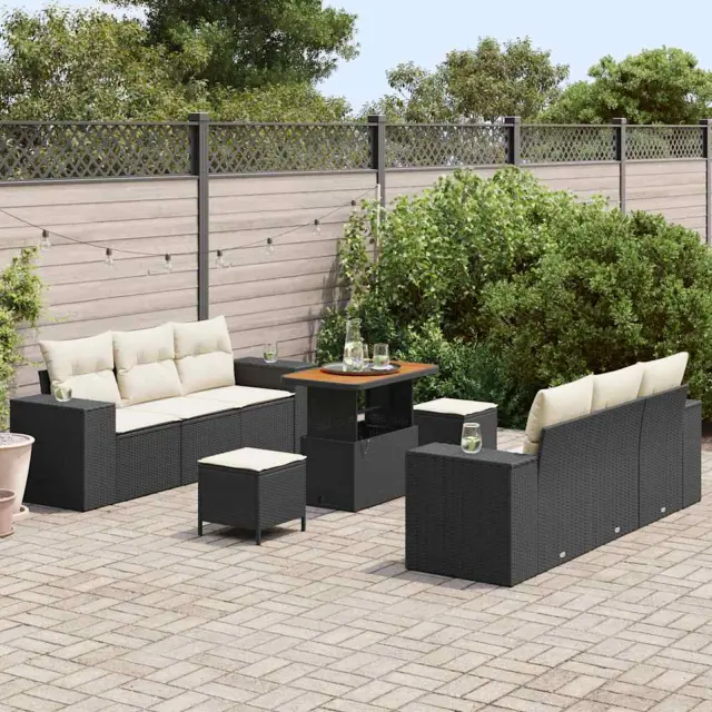 vidaXL Vrtna sedežna garnitura 9 pcs Črna in krem 90 x 55 x 71 cm