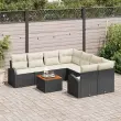 vidaXL Vrtna sedežna garnitura 9 pcs Črna in krem poli ratan