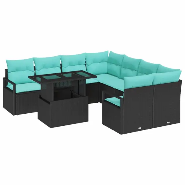 vidaXL Vrtna sedežna garnitura 9 pcs Črna in modra poli ratan