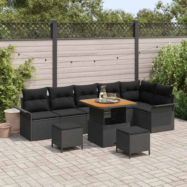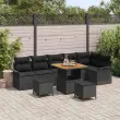 vidaXL Vrtna sedežna garnitura 9 pcs Črna poli ratan