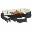 vidaXL Vrtna sedežna garnitura 9 pcs Črna poli ratan