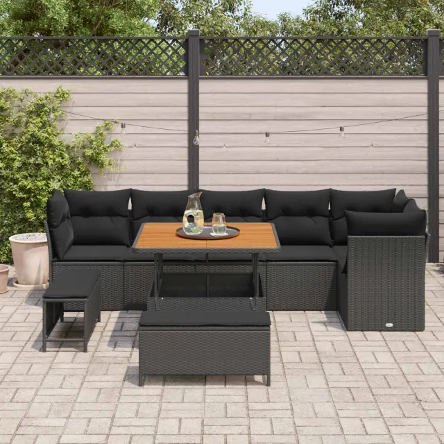 vidaXL Vrtna sedežna garnitura 9 pcs Črna poli ratan