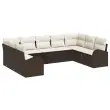 vidaXL Vrtna sedežna garnitura 9 pcs Rjava in bela poli ratan