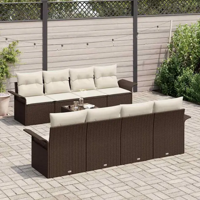 vidaXL Vrtna sedežna garnitura 9 pcs Rjava in krem 55 x 55 x 37 cm