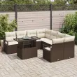 vidaXL Vrtna sedežna garnitura 9 pcs Rjava in krem poli ratan