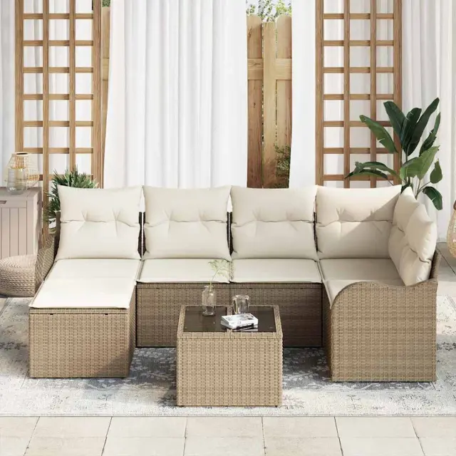Ta sodoben vrtni set kavč je popoln za sprostitev. Z elegantnimi linijami in minimalističnim oblikovanjem se lepo poda vsakemu vrtu ali terasi. Set vključuje udoben kavč z mehkimi blazinami in trpežnimi materiali. Ne glede na to, ali se družite s prijatelji ali uživate v soncu, ta set ponuja funkcionalnost in stil.