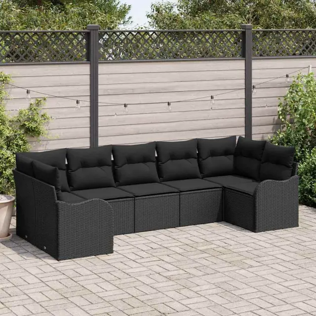 vidaXL Vrtna sedežna garnitura Črna poli ratan
