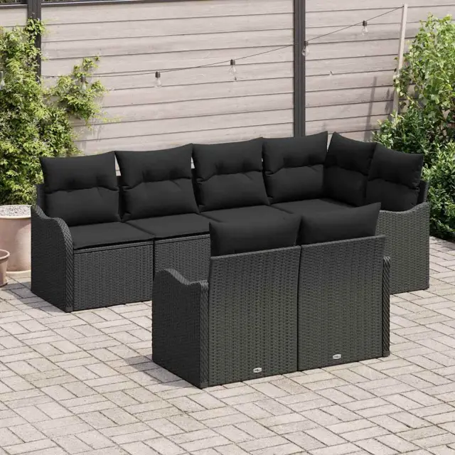 vidaXL Vrtna sedežna garnitura Črna poli ratan