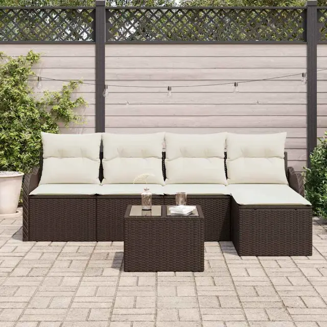 vidaXL Vrtna sedežna garnitura Rjava poli ratan
