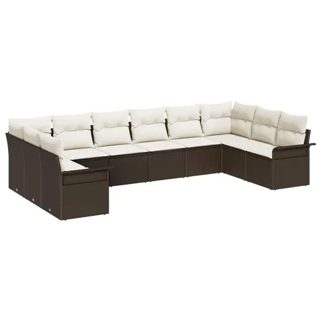 vidaXL Vrtna sedežna garnitura s shranjevanjem 10 pcs Rjava poli ratan