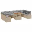vidaXL Vrtna sedežna garnitura s shranjevanjem 11 pcs Bež Poly ratan