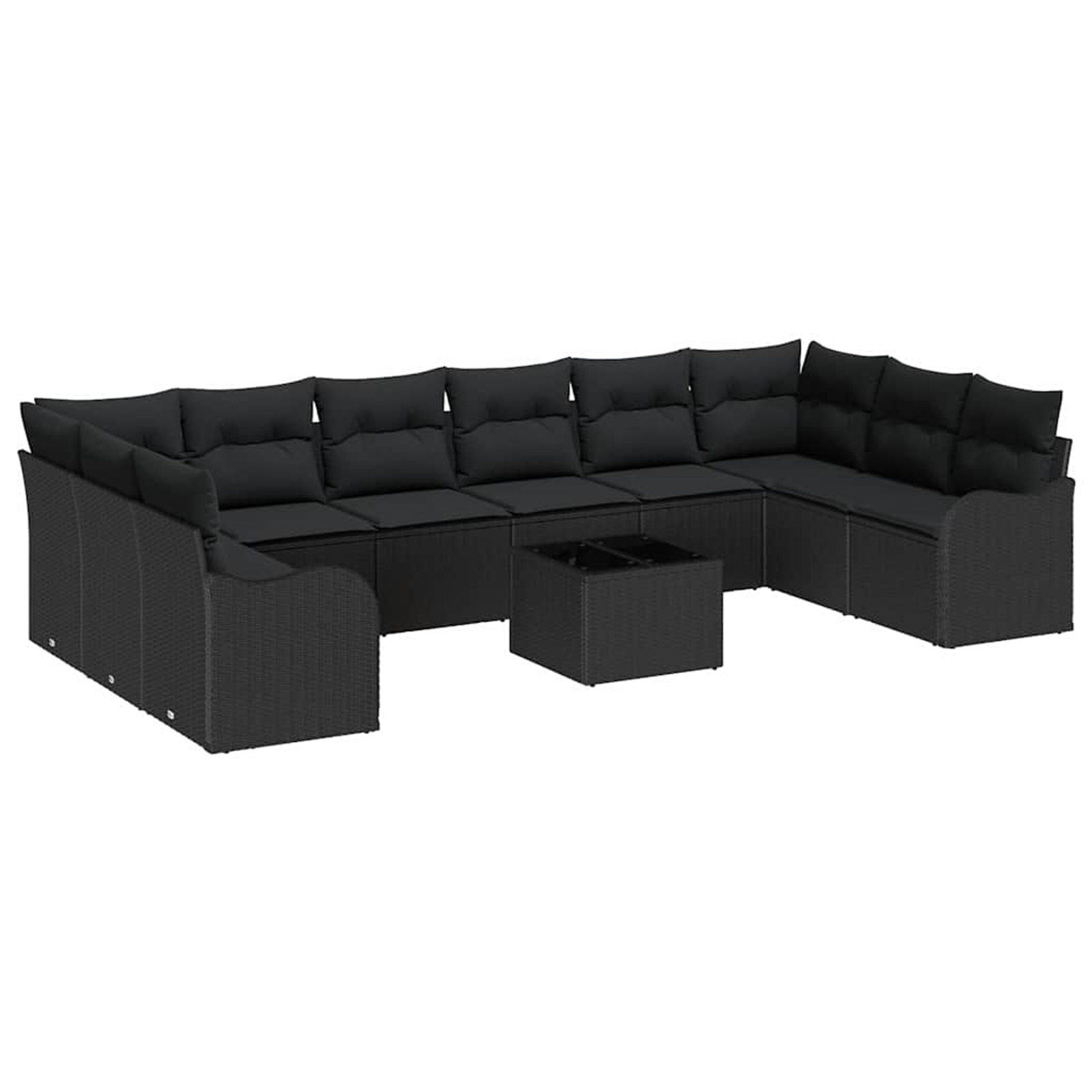 vidaXL Vrtna sedežna garnitura s shranjevanjem 11 pcs Črna poli ratan