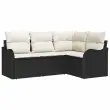 vidaXL Vrtna sedežna garnitura s shranjevanjem 4 pcs Črna poli ratan