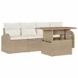 vidaXL Vrtna sedežna garnitura s shranjevanjem 5 pcs Bež Poly ratan