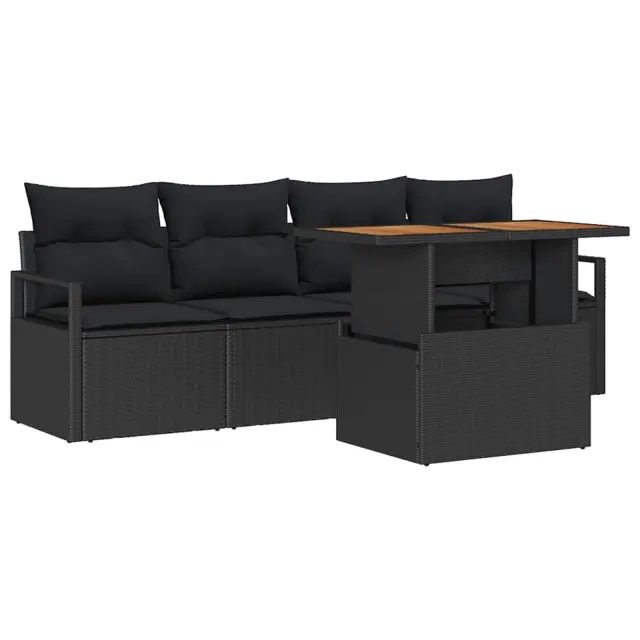 vidaXL Vrtna sedežna garnitura s shranjevanjem 5 pcs Črna Poly ratan