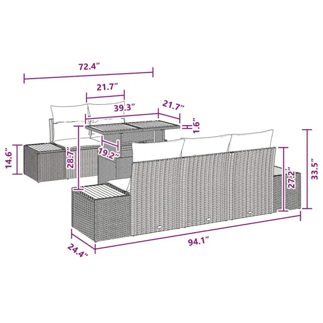 vidaXL Vrtna sedežna garnitura s shranjevanjem 6 pcs Črna Poly ratan