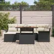 vidaXL Vrtna sedežna garnitura s shranjevanjem 7 pcs Črna Poly ratan