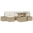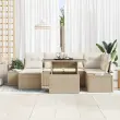 vidaXL Vrtna sedežna garnitura s shranjevanjem 7 pcs Bež Poly ratan