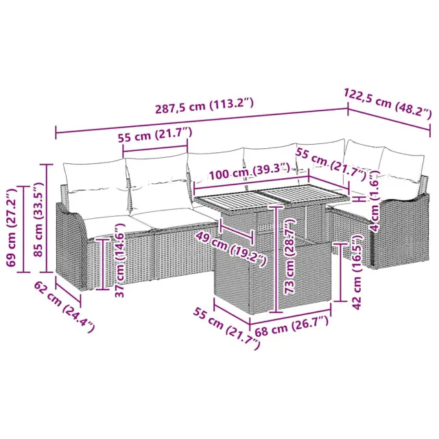 Ta garnitura za vrt doda stil vsakemu zunanjemu prostoru, bodisi da gre za tvoj vrt ali teraso. Ima sodoben izgled s čistimi linijami in brez odvečnega kompliciranja, pa je še vedno praktična za zabave ali lenarjenje poleti. Udobno sedi nekaj ljudi, ne da bi bilo preveč zasičeno, popolnoma se zlije z vsemi stilnimi vrtovi in elegantnimi terasami.