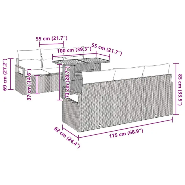 • Priročno shranjevanje: Poleg sedežne garniture ta set ponuja dovolj prostora za shranjevanje blazin in drugih stvari na prostem. Vsak kos sofe ima skrit predal z vodoodpornim plastičnim zabojem, da ostanejo tvoje reči suhe.