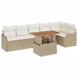 vidaXL Vrtna sedežna garnitura s shranjevanjem 7 pcs Bež Poly ratan