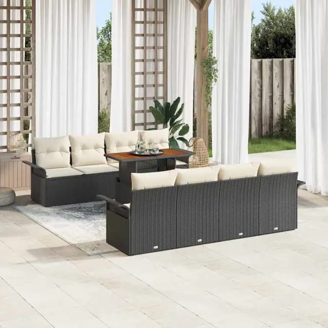 vidaXL Vrtna sedežna garnitura s shranjevanjem 9 pcs Črna Poly ratan