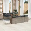 vidaXL Vrtna sedežna garnitura s shranjevanjem 9 pcs Siva Poly ratan
