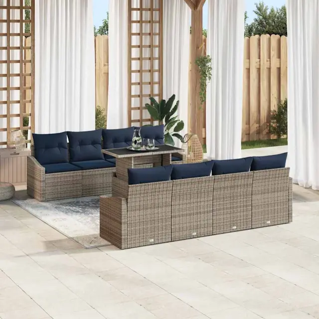 Ta ročno izdelan modularni vrtni sedežni set povezuje stil in praktičnost, kar ga dela odlično izbiro za tvoj zunanji prostor. Narejen je iz trpežnega poliratana s prašno lakiranimi jeklenimi okviri, kar prinese moden in prijeten občutek v tvoj vrt ali teraso. Ne glede na to, ali prirejaš poletno zabavo ali enostavno uživaš v mirnem večeru na prostem, so udobni stoli in zasnova idealni za poležavanje in sončenje.