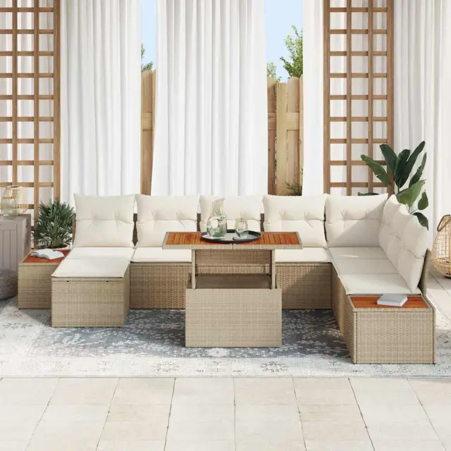 vidaXL Vrtna sedežna garnitura s shranjevanjem 9 pcs Bež Poly ratan
